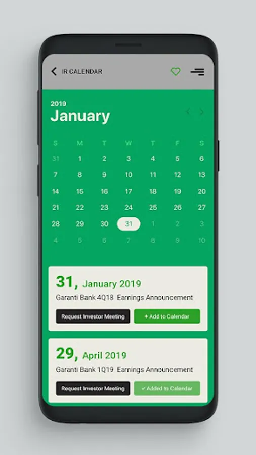 • Easily reach, call and e-mail IR Team, Financial Institutions Structured Finance Team and Sustainability Team, and add to contacts directly.