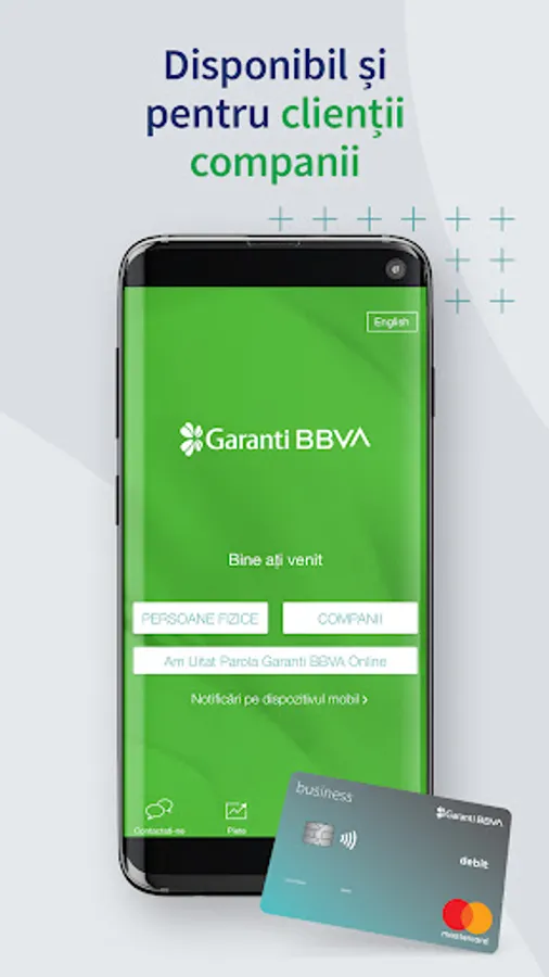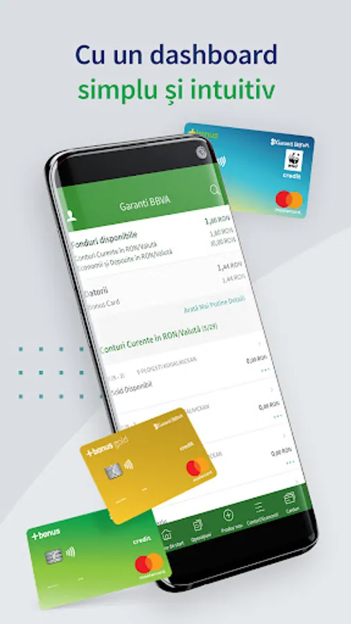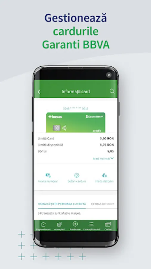 Cu Garanti BBVA Mobile, aplicatia de mobile banking de la Garanti BBVA, iti organizezi timpul cum doresti, pentru ca poti face majoritatea operatiunilor financiare de pe telefon. Astfel, iti verifici in orice moment conturile, faci plati in lei, achiti datoria pentru Bonus Card, platesti facturile de utilitati si reincarci orice cartela telefonica. Vrei mai mult? Poti face schimburi valutare, sa iti modifici parola de acces pentru Garanti BBVA Online, sa vizualizezi BancoSmart-urile si agentiile Garanti BBVA din apropierea ta, sau sa suni la Serviciul de Relatii Clienti. La prima logare in aplicatia Garanti BBVA Mobile, inregistreaza telefonul ca dispozitiv de autentificare folosind Ciframaticul. Apoi te vei loga in Garanti BBVA Mobile doar in baza parolei unice. Aplicatia este disponibila atat in limba romana, cat si in limba engleza.
