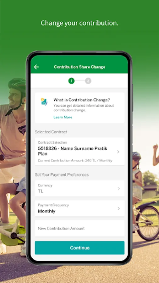 You can easily change your contribution amount and fund distribution. Through "Fund Distribution Change" function under transactions menu, you can change fund distribution of the contracts that you’re the participant.