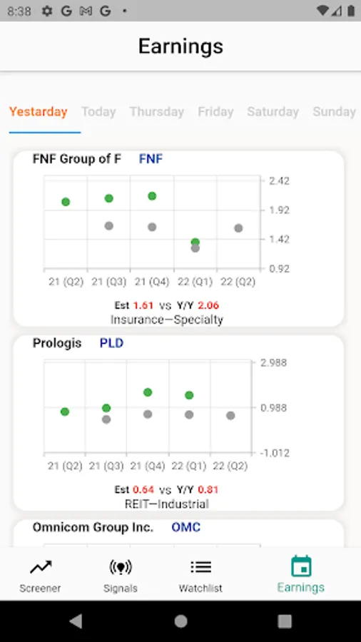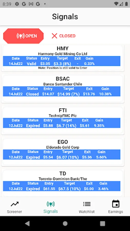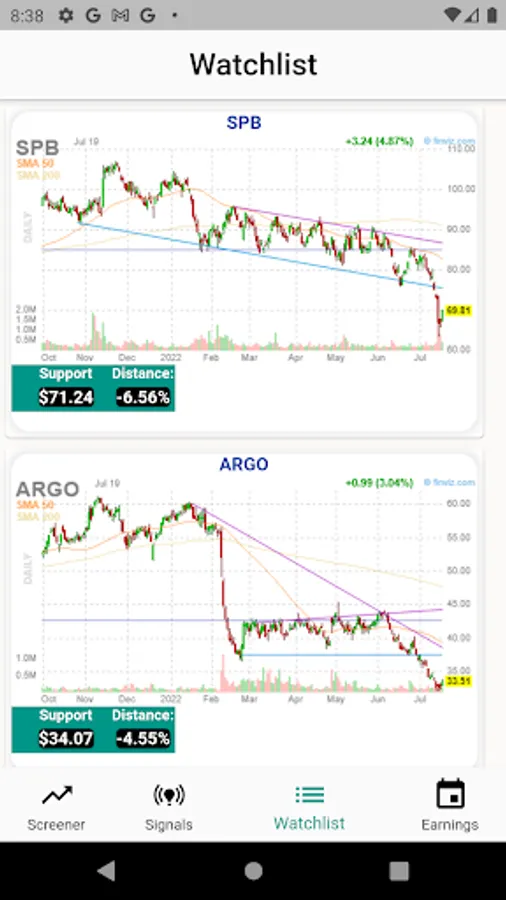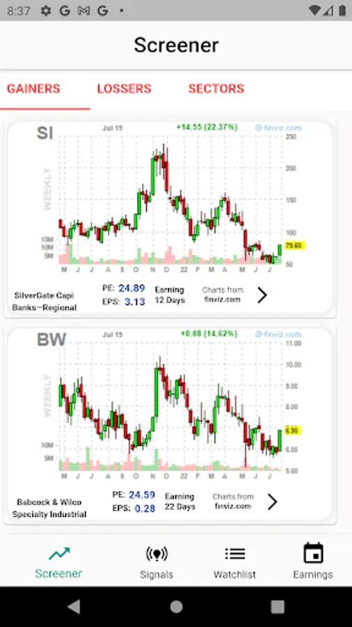My Stock Signals app provides stock screener or stock scanner, stock signals, stock market earnings calendar.