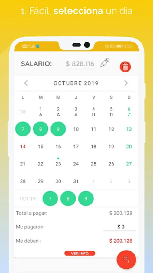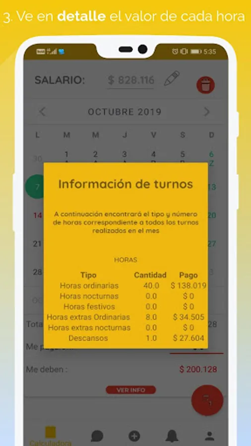 The app calculates the real value that must be paid to the security guard in accordance with Colombian labor law