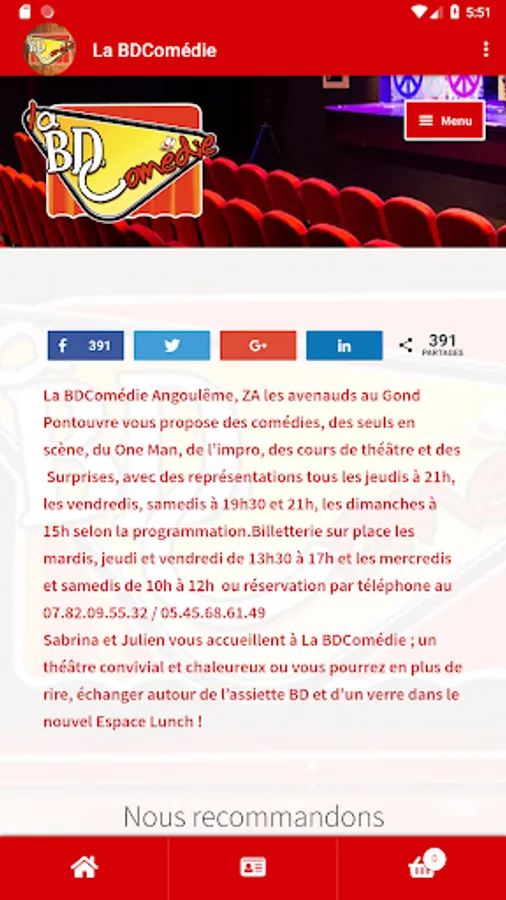 The BDComédie Angoulême, ZA avenauts Gond Pontouvre near Angoulême offers comedies, only on stage, One Man, improv, theater classes and Surprises.