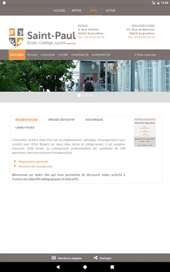 Installation is free and the identification to the mobile site Pronote is available to parents, students and teachers of the college / Lycée Saint Paul Angouleme with your usual identifiers received early in the school year.