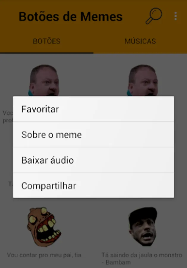 We have over 400 memes in the app, where you can share on WhatsApp, save to bookmarks and even download.