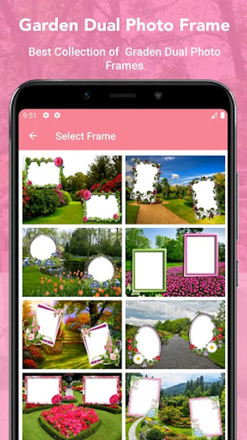 For all the nature lovers around the world, there is a garden dual photo frames app that will show your love and affection towards nature.