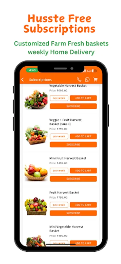 Harvest Basket Subscription: Enjoy fresh, organic, chemical-free fruits and vegetables with our Harvest Basket subscription, delivered straight from local farms to your doorstep. Get a variety of seasonal produce, handpicked for its quality and taste.