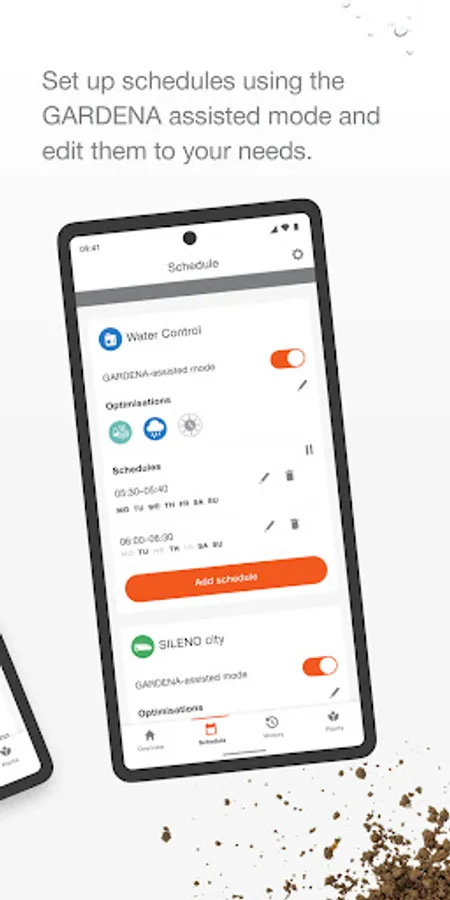 The app guides you through the set-up of your robotic lawnmower or irrigation system and helps you to create the best schedules.