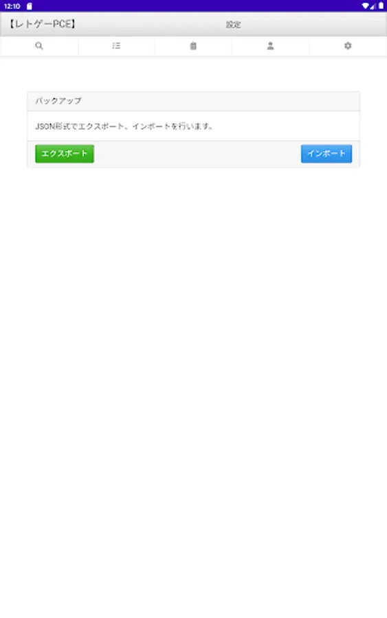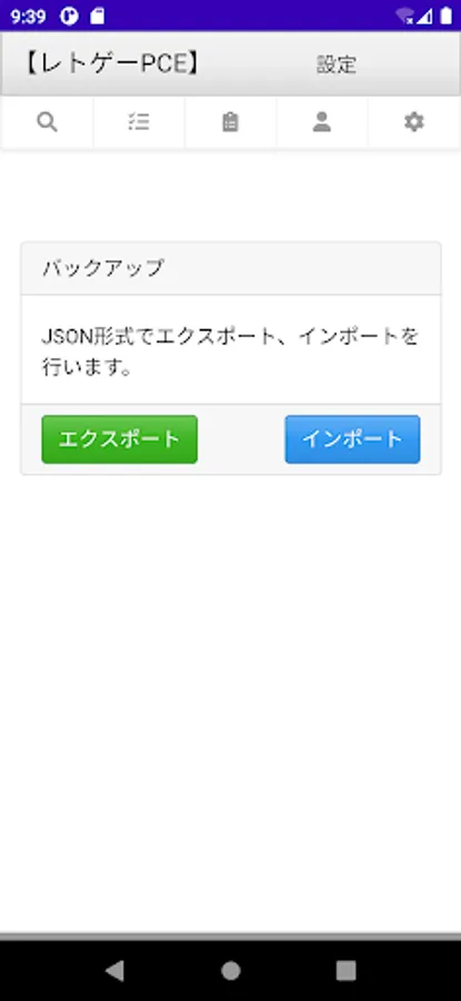 * The backup is saved in the download folder in JSON format. Please save the image separately. (CollectionPCE folder in DCIM folder)