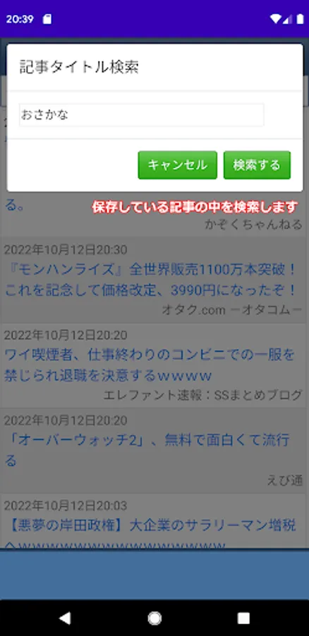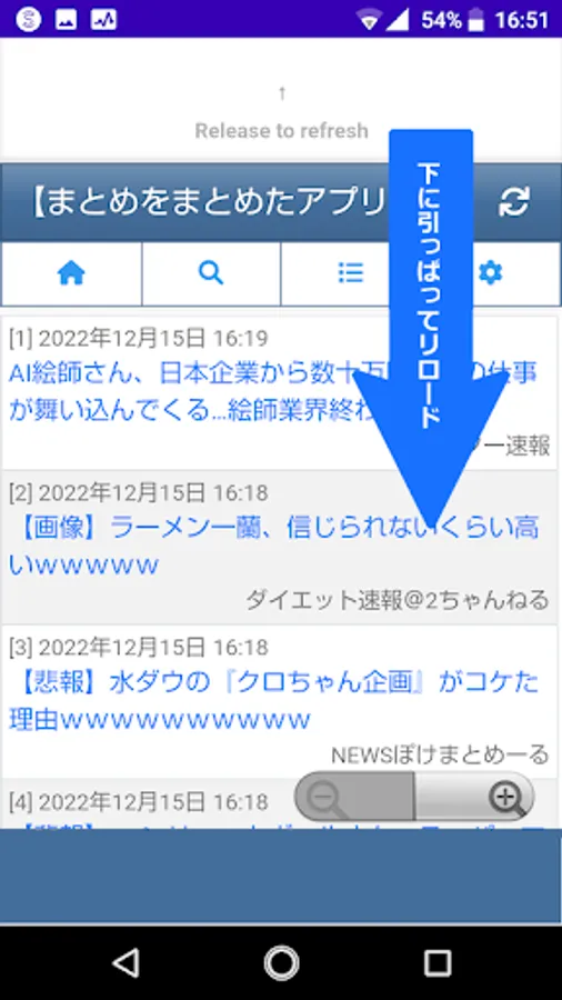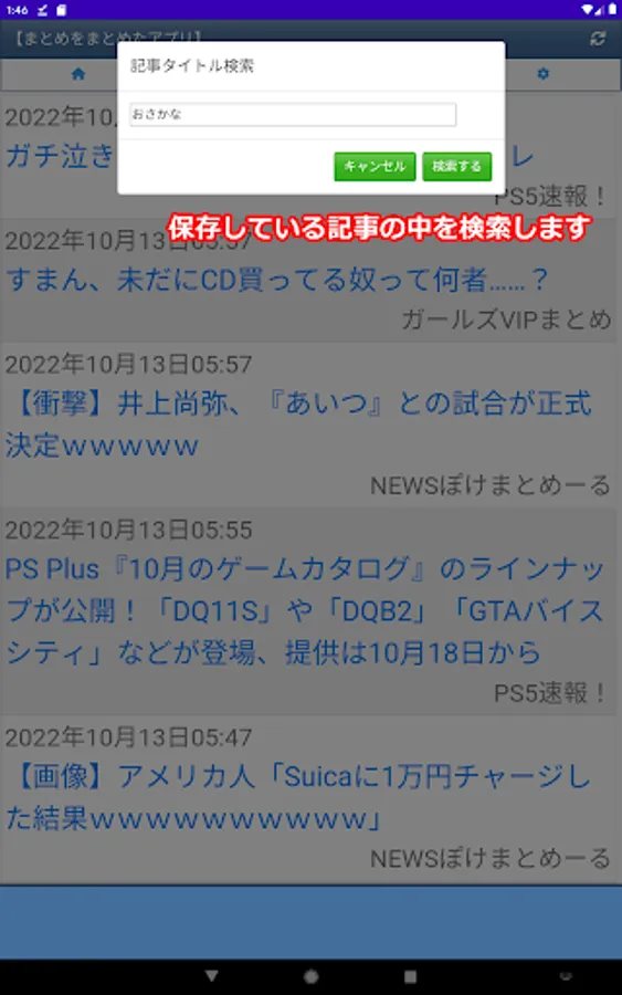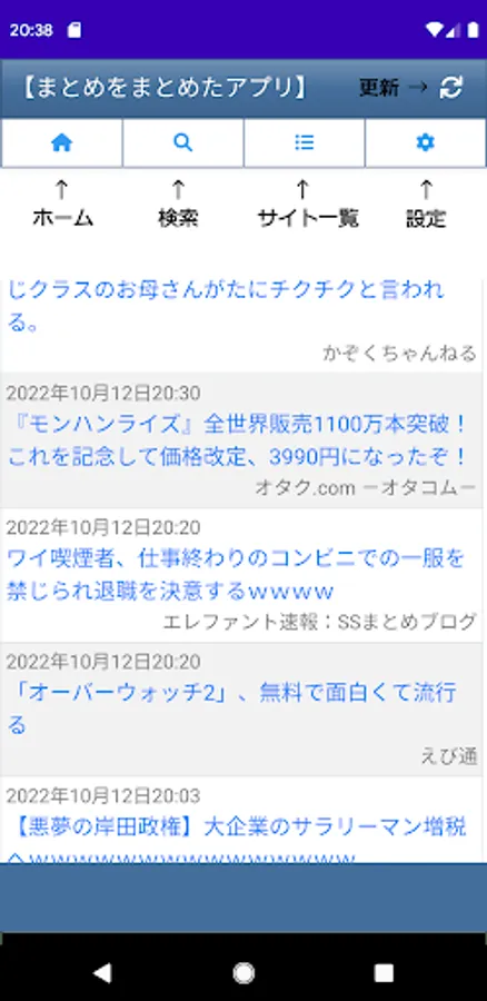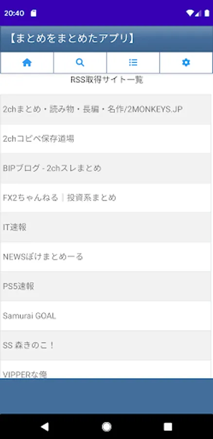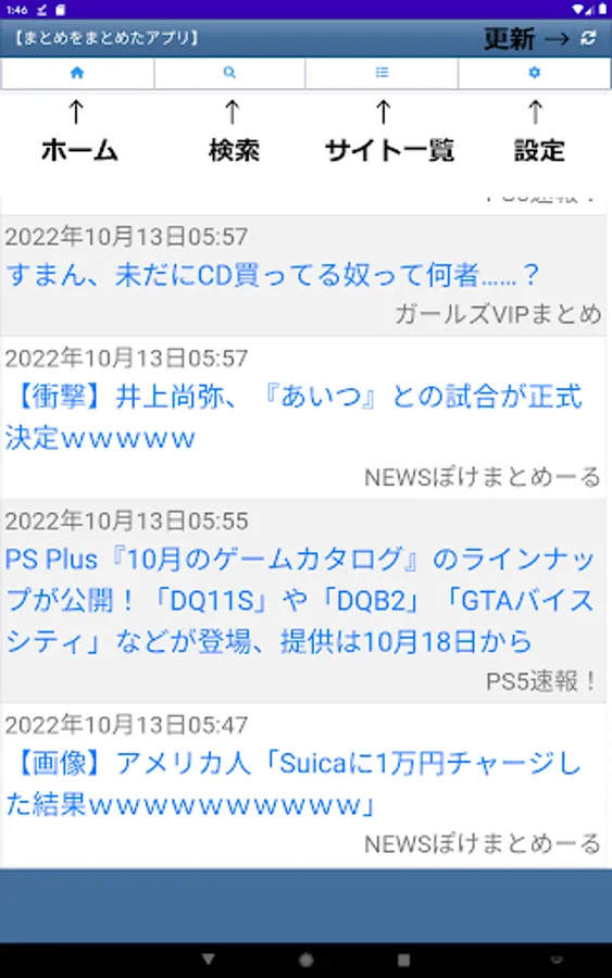 Information is received from RSS of various summary sites (2ch, 5ch, etc.), and the list is displayed in reverse chronological order.