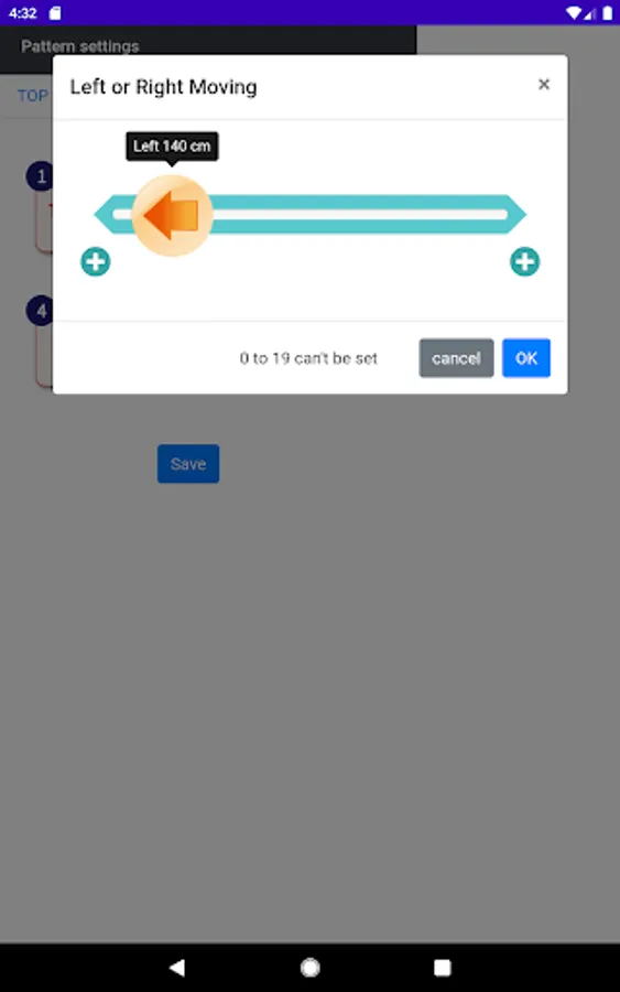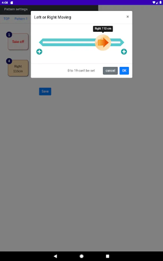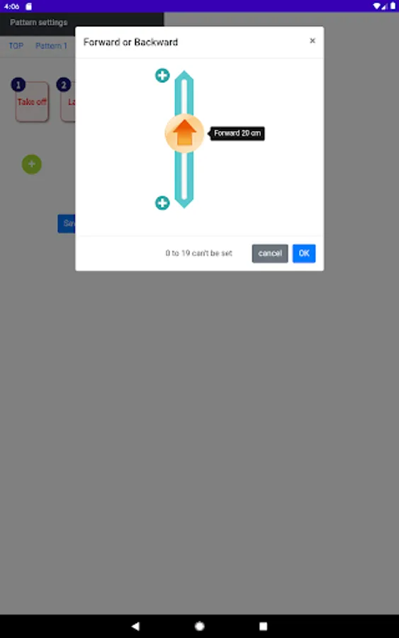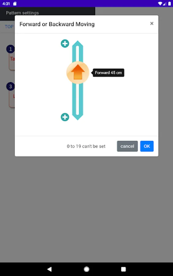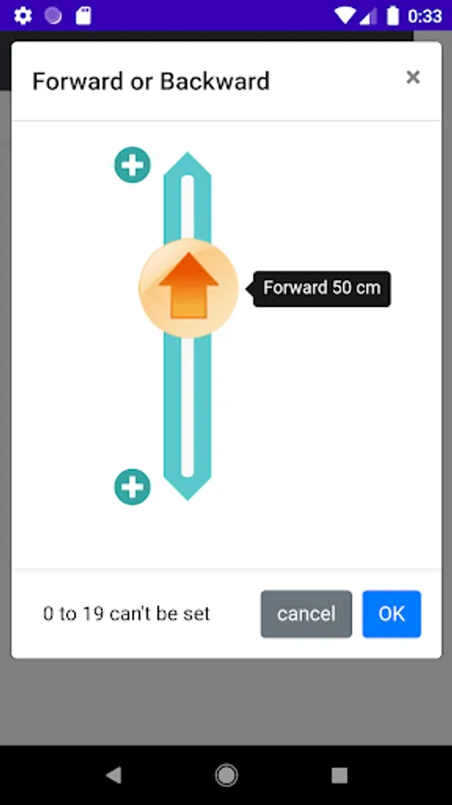 [Forward or Backward] 20 to 200 cm (in 5cm increments)