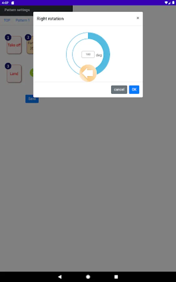 [Right rotate, Left rotate] 1 to 360 deg (in 5deg increments)