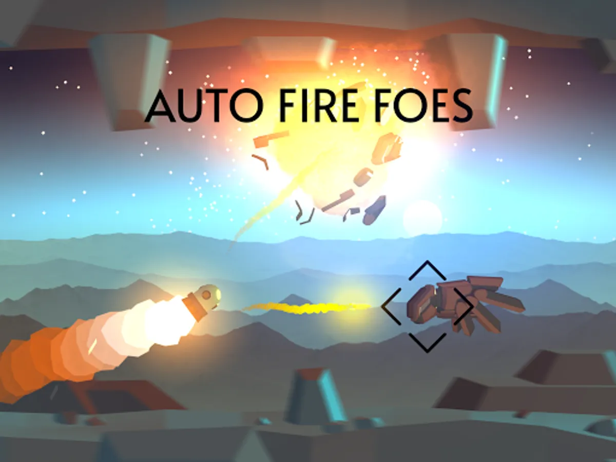 Your flop rocket fires homing missiles. And it shoots automatically. So your main task is to fly around the enemies and destroy them before the collision. Just look at how they scatter from the explosion!