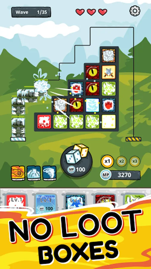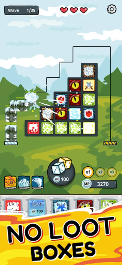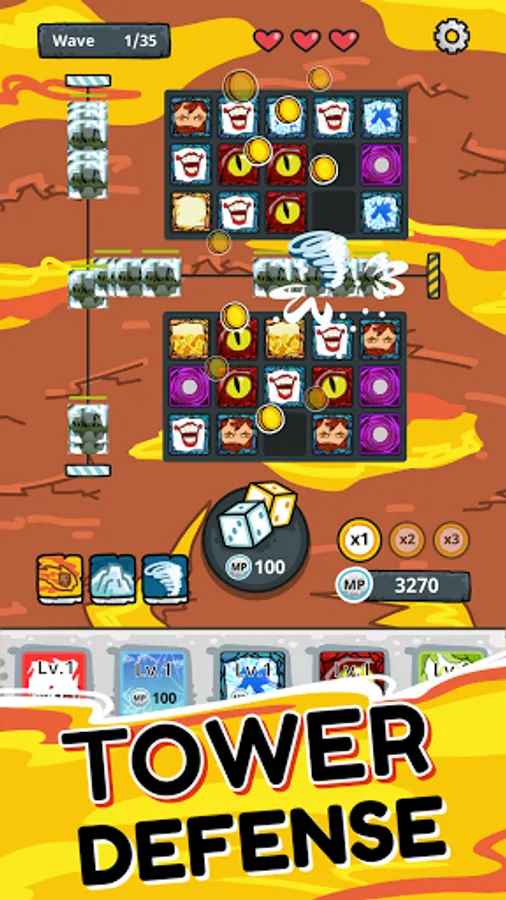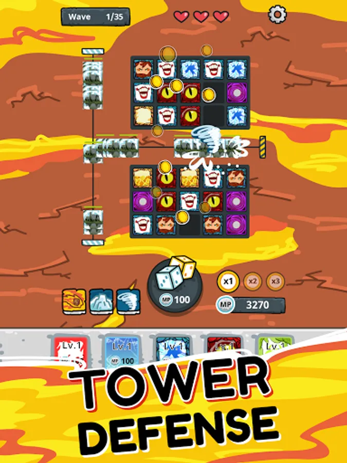 You get an MP for killing enemies in the base tower defense. MP can be spent on improving certain dice or on buying new dice inside the tower games. You can fusion dice of the same type to improve. Their attack speed is significantly accelerated and the dice begins to do more damage to crush enemies.