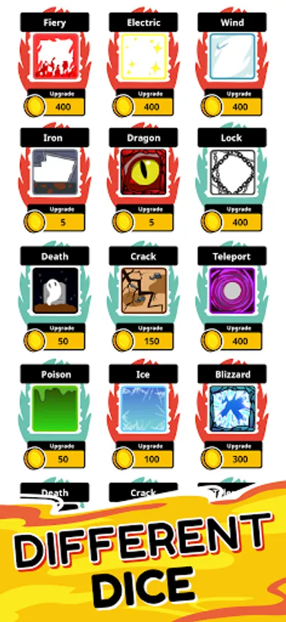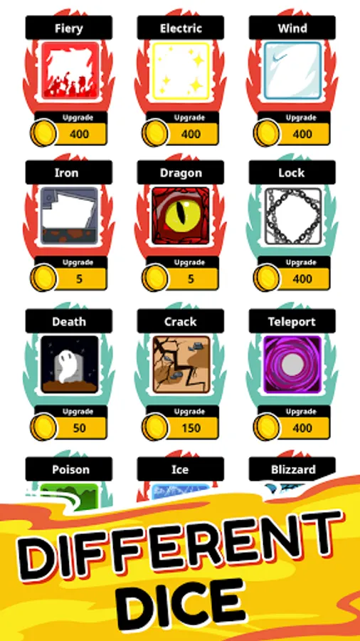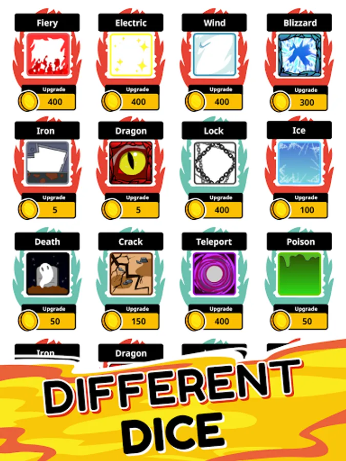After completing a level in this tower defense game, you will get coins, regardless of winning or not. You can use the coins to improve your dice, making them more powerful each time to compete in rush royale modes. It increases damage, attack speed, and special abilities of the radom dice card!