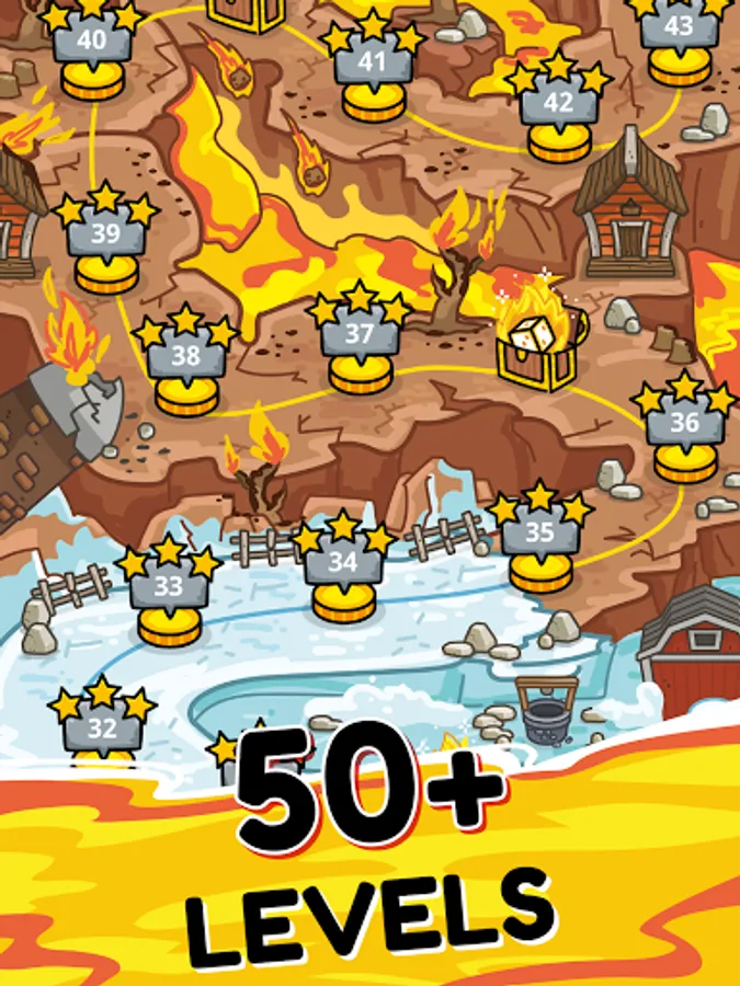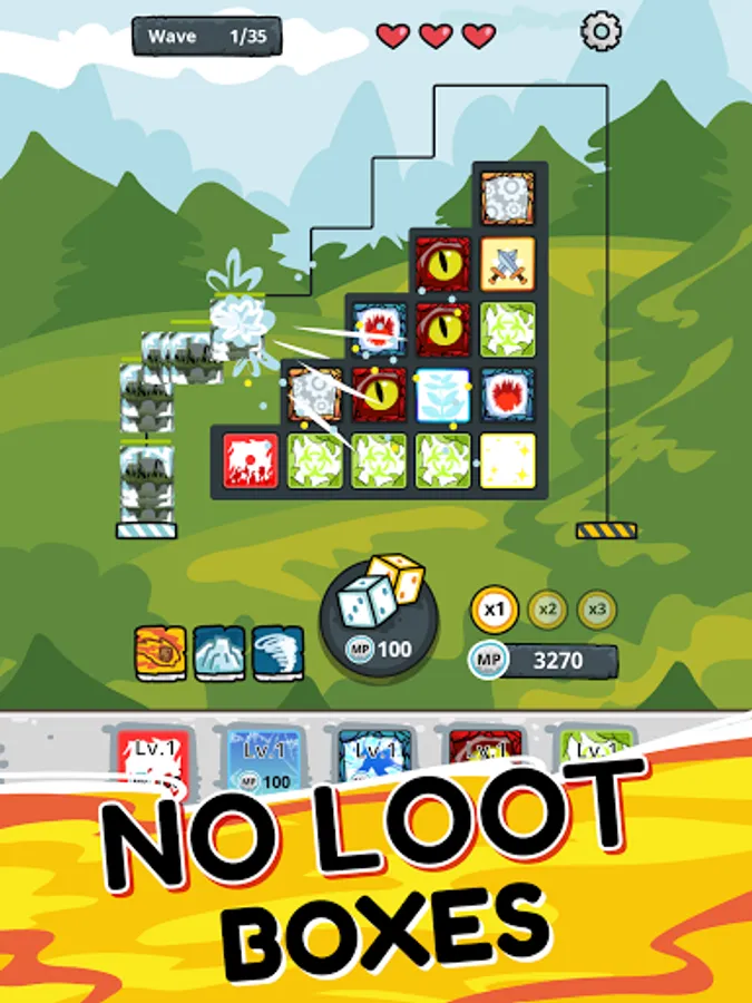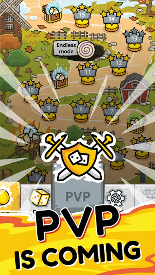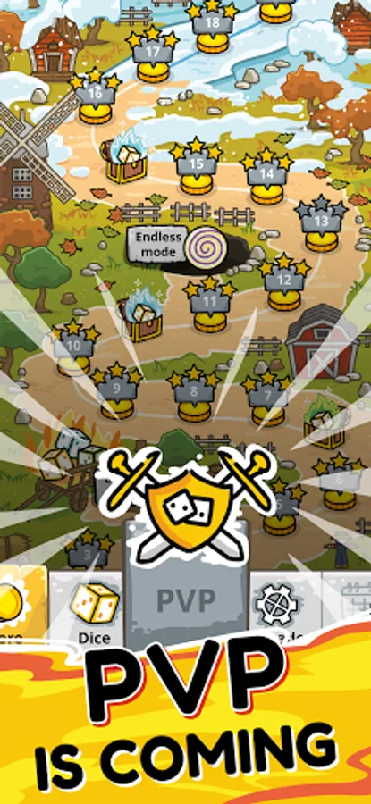 The random tower defense dice game has 50 PVE levels. Each level is more challenging than the last. The level card is different from the one before it, as random dice as the dice are! You need to think carefully of which royal dice to fusion and when to level!