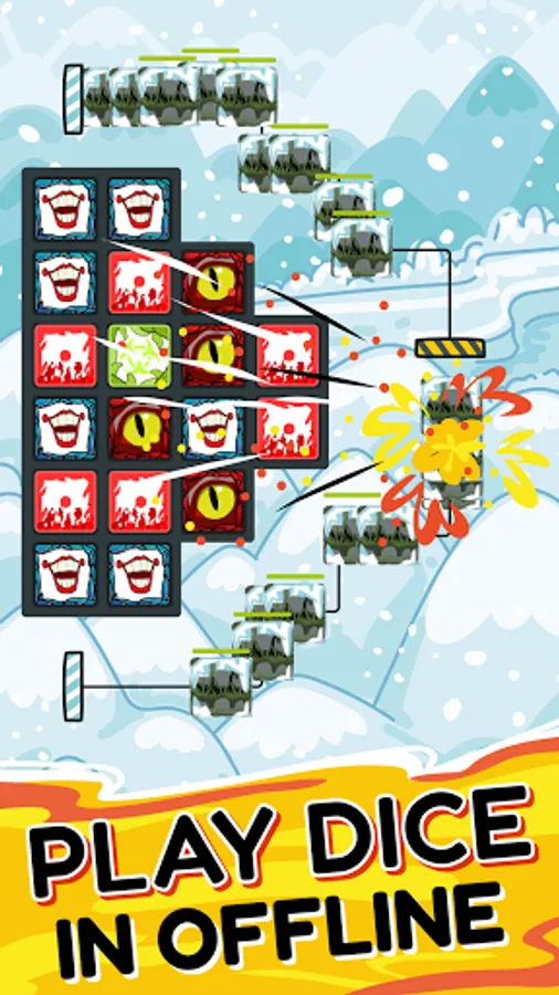Offline Dice: Random Rush Royale game has 11 types of mobs and 4 types of bosses. The further you go around the dice game, the stronger the bosses. But the more money you receive for their defeat.