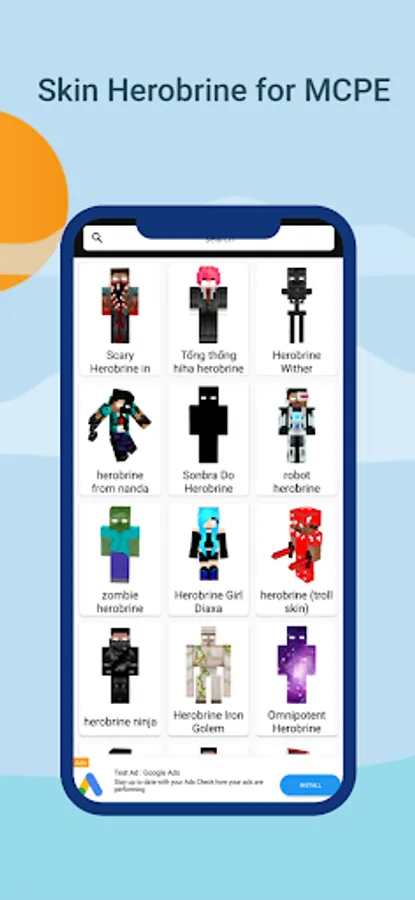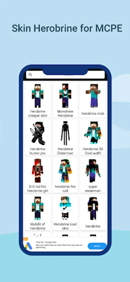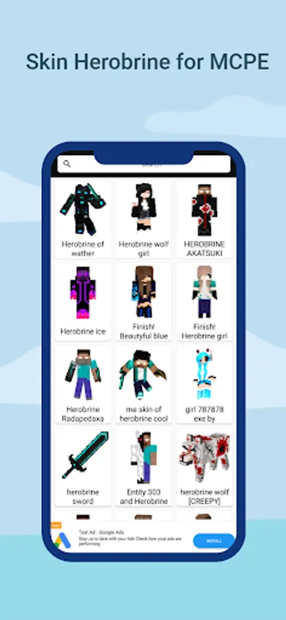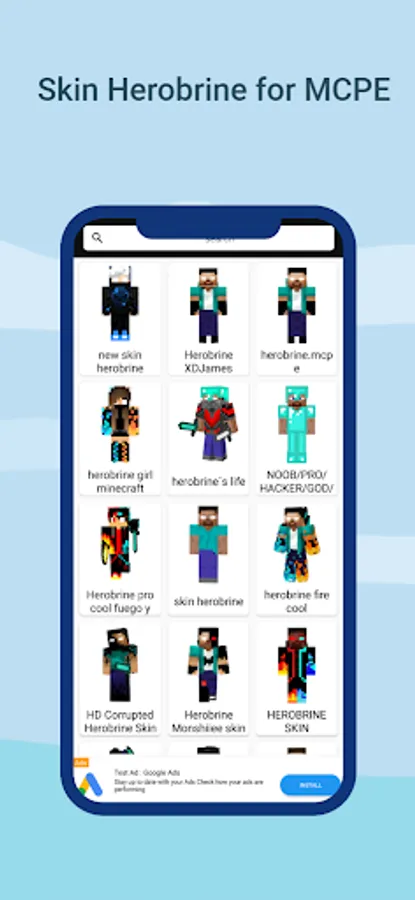 Hi, this is an application that contains a collection of Herobrine skins that you can play in the Minecraft game.