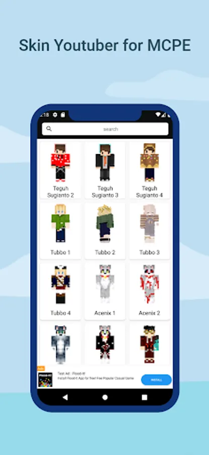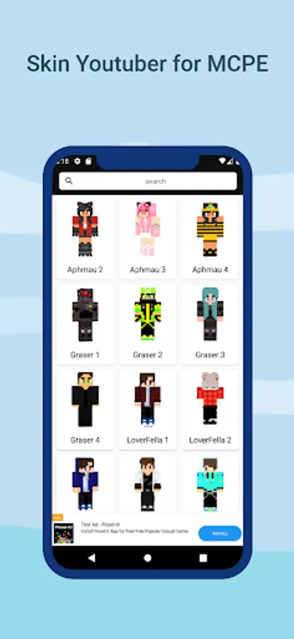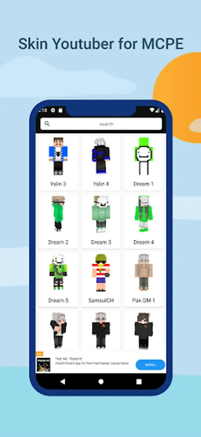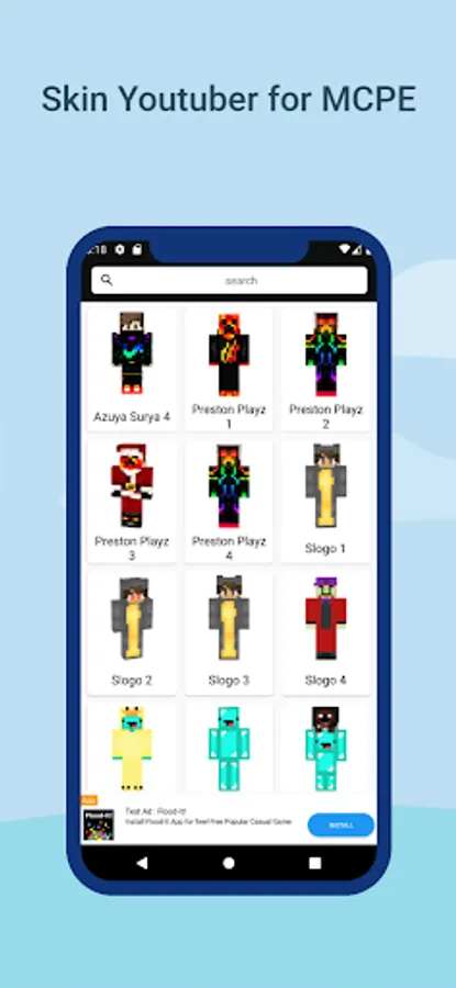 As the name implies, this application only contains skins for YouTubers around the world. You can search for your favorite Minecraft YouTuber, or you can also request your favorite YouTuber skin.
