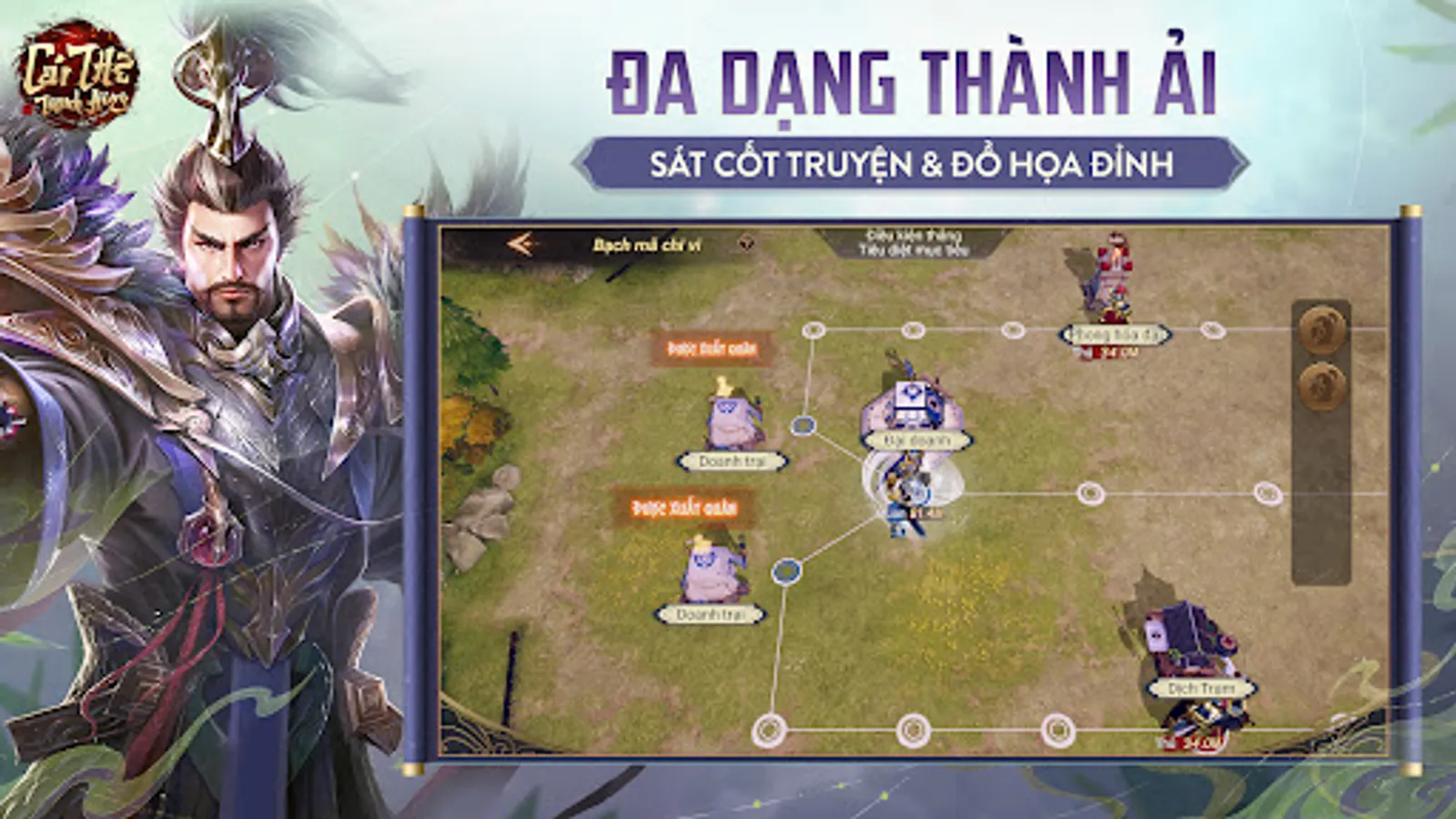 Garena Cai The Tranh Hung is a FREE mobile game with tactical card gameplay set in the Three Kingdoms with top-notch graphics. Start Cai The Tranh Hung by recruiting famous generals in the Three Kingdoms, building a squad with 5 main generals with powerful Bow, Cavalry, and Ministry armies as well as taking advantage of in-game tactics to assert themselves. scheming.