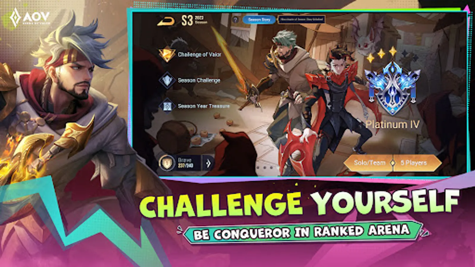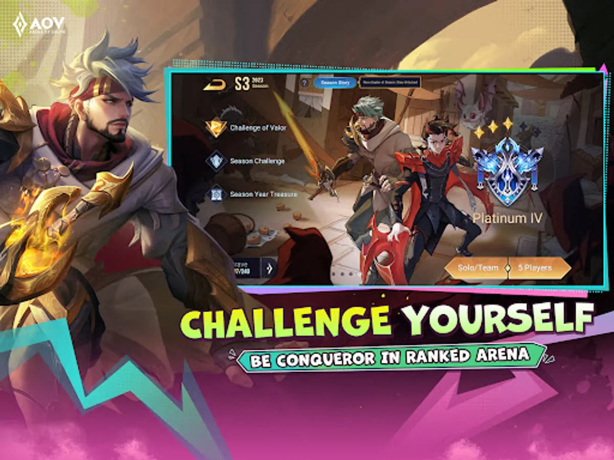 Experience AOV (Arena of Valor), an epic new 5v5 multiplayer online battle arena (MOBA) comes with ultra-HD graphic, premium content and made with attention to balance. Victory can only be obtained by skill. Call on your teammates to join and become legendary in the arena.
