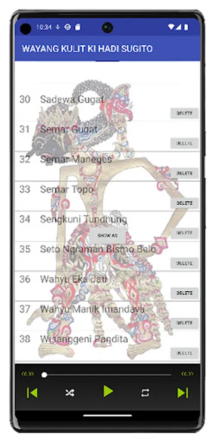 Ki Hadi Sugito's wayang kulit performance, which is pleasing to hear, has a story line and is a noble cultural art for all of us.