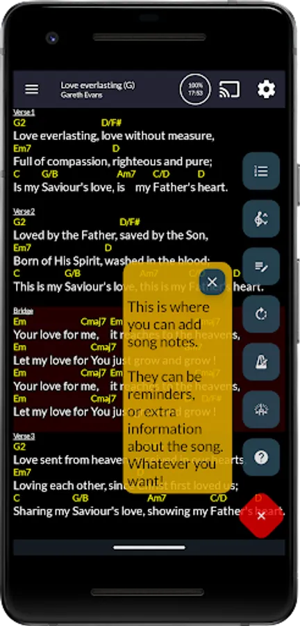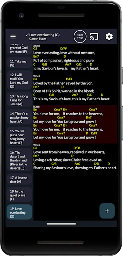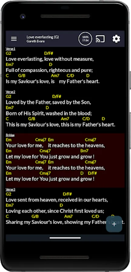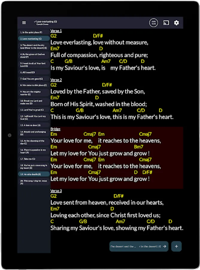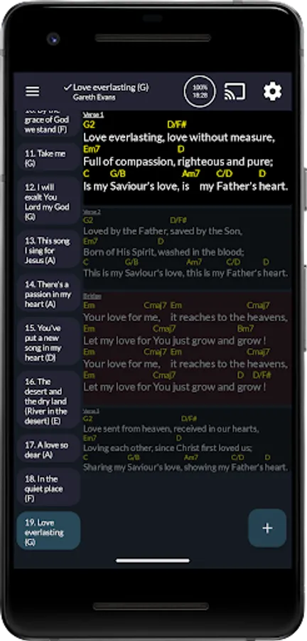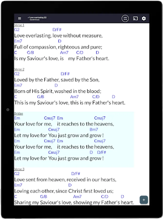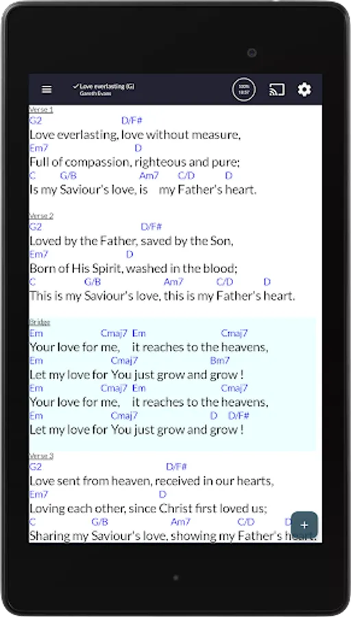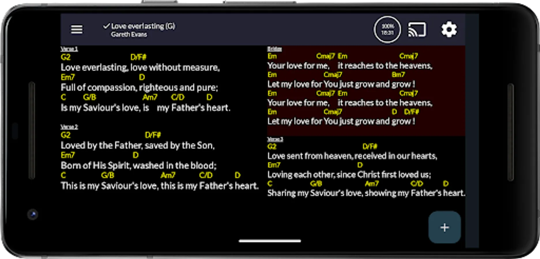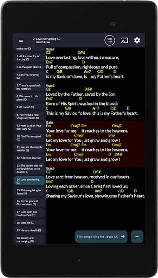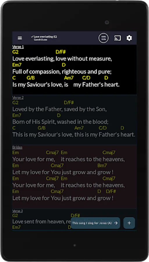 A songbook app designed for and musicians, singers, worship leaders, etc. that allows you to view chord charts and lyrics on your Android device and use it as a portable music songbook. The app uses the OpenSong format, but will also open and convert songs created in ChordPro and iOS style song formats. PDF documents are also supported on Android Lollipop.
