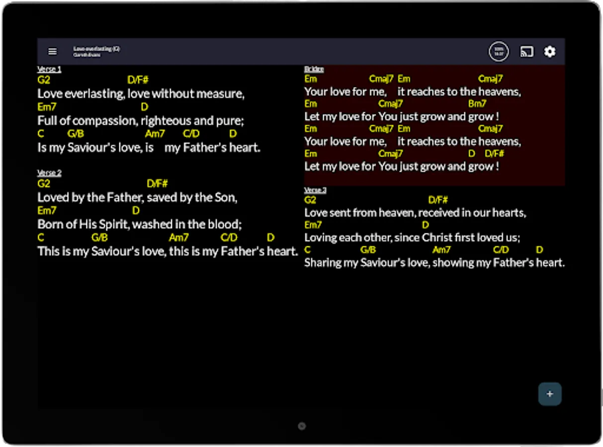 Fully compatible with iOS style songs, .pro and .chopro file format (songs are automatically converted into OpenSong format)