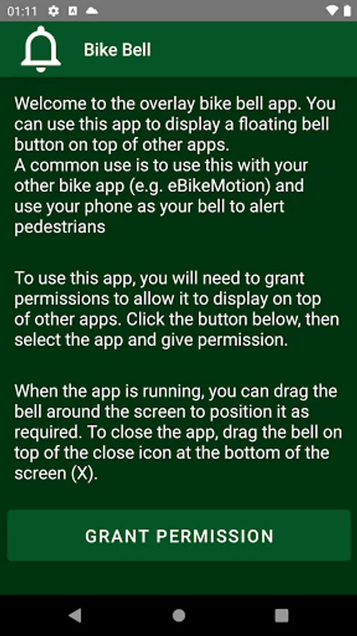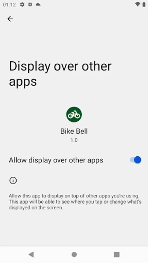 This app overlays a small bell button on top of other apps.