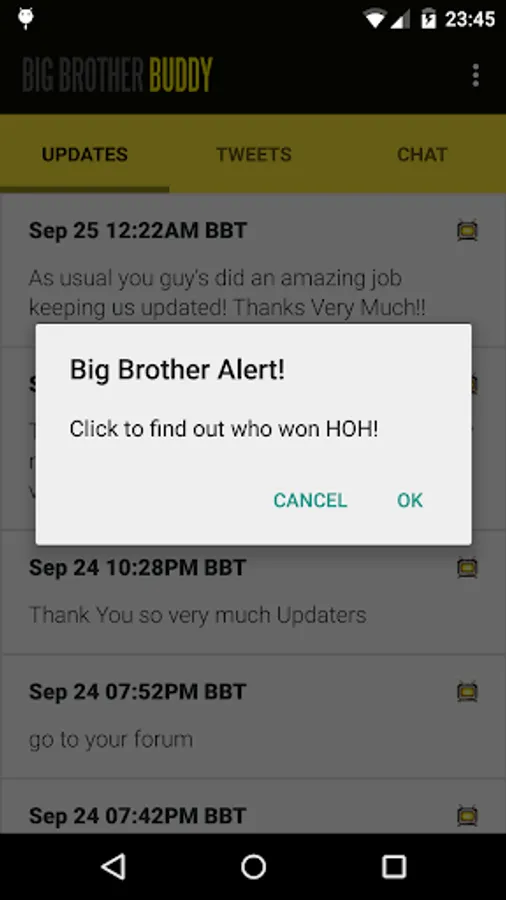 ** Careful! This app contains spoilers, and real-time notifications about what's happening in the Big Brother house at this moment. You will HATE us if you don't want spoilers. **