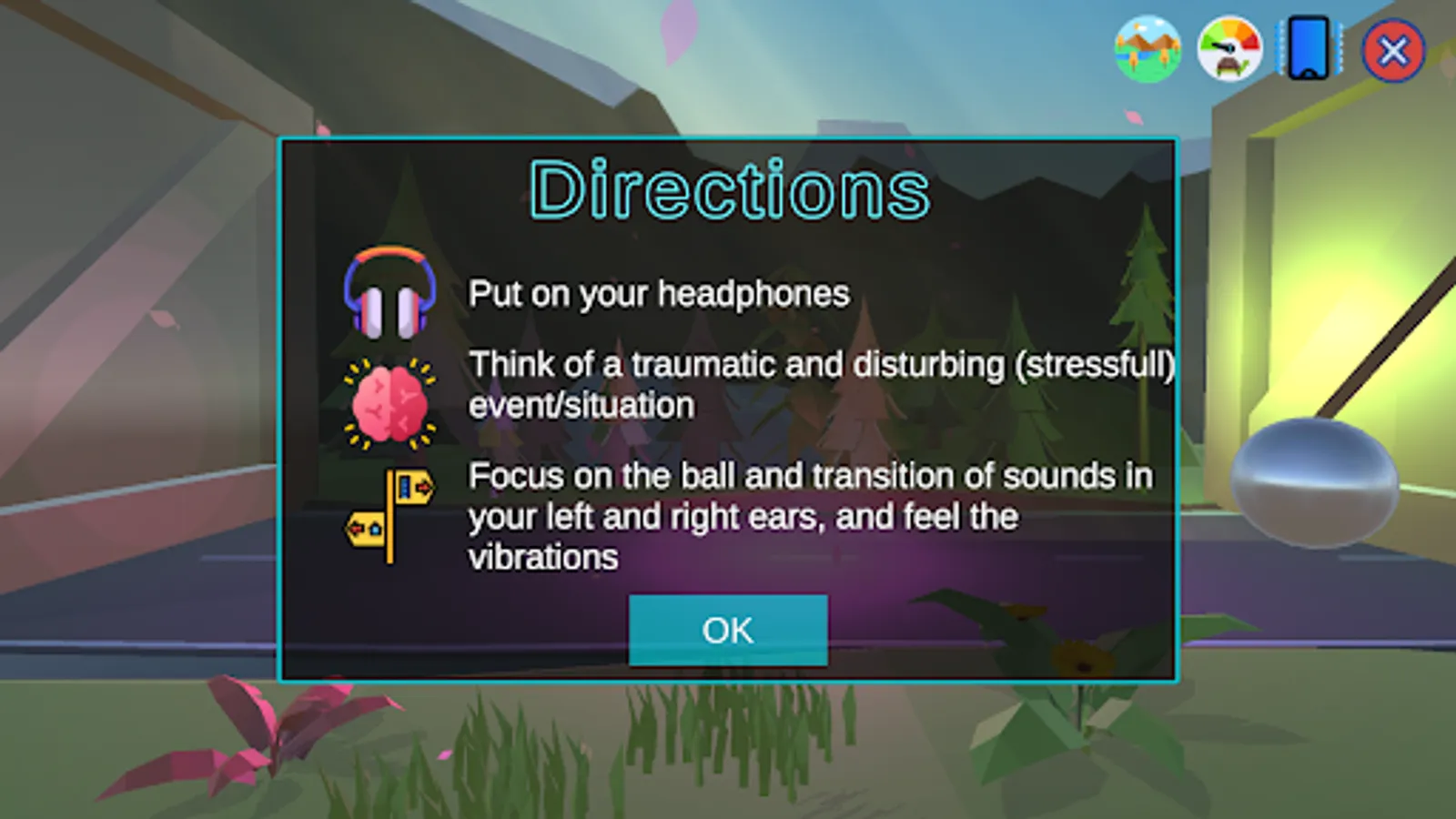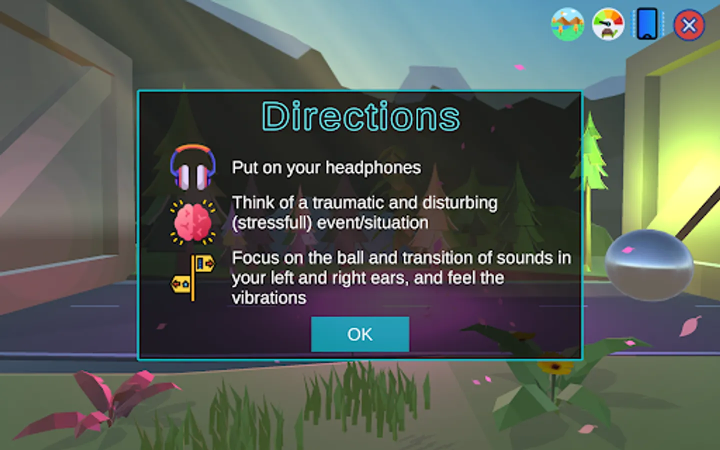 DISCLAIMER: EMDR can be very upsetting & potentially harmful if you don't know what you're doing by yourself. Please first work with a therapist until you are comfortable & confident doing this on your own. WONDERFUL experience with this app, was just as effective as in-person sessions without the awkwardness of my last therapist. This has & is helping me recall details of & process trauma from 30 years ago. Noticed positive changes after the first session.