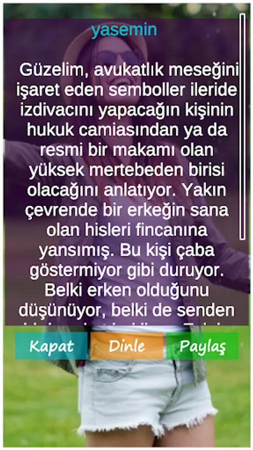 Your fortune reading; You can share it on social media with the Share button on the fortune-telling screen and send it to your friends.