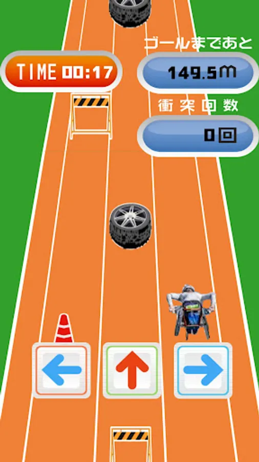 A simple game in which a sports player in a wheelchair controls the wheelchair to overcome obstacles.