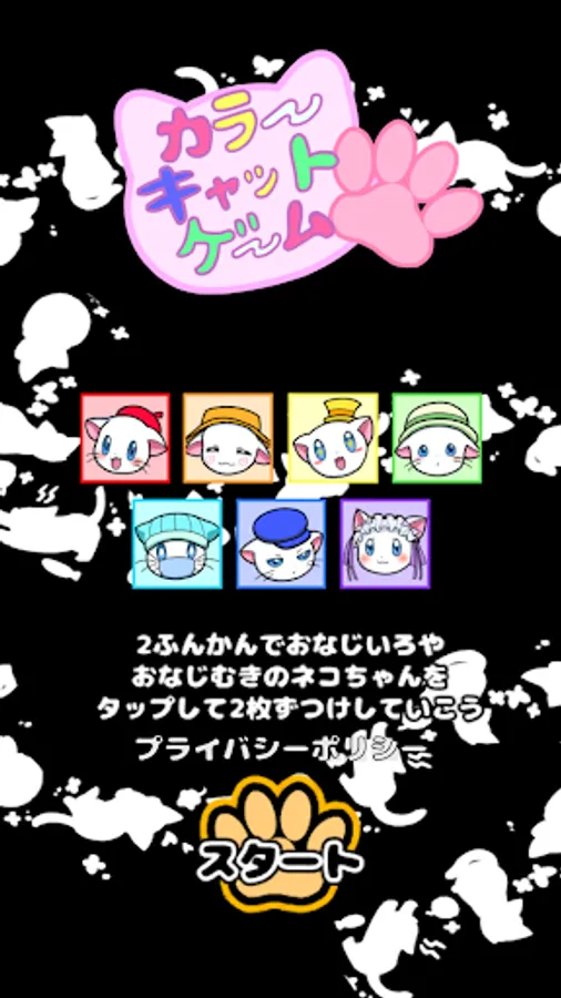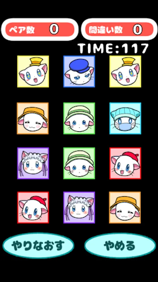 The time limit is 2 minutes, and if you erase all the cats of the same color and facing the same direction within the time limit, you will go to the next level!