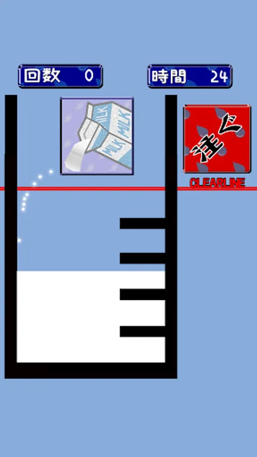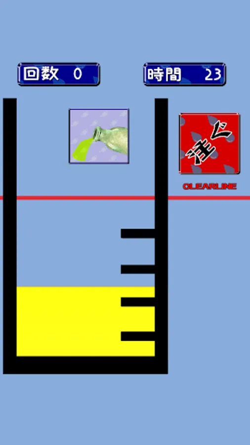 The time limit is 30 seconds. If you can pour the liquid up to the scale line, the game is clear!