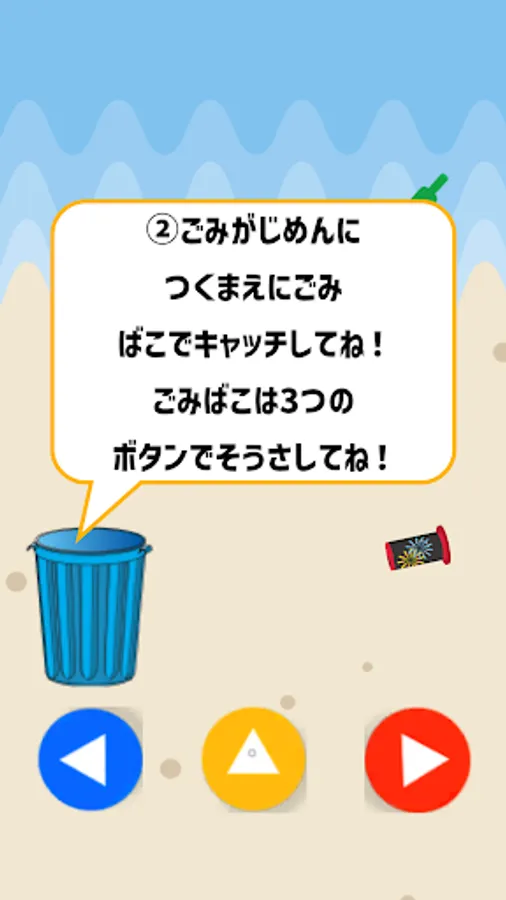 Let's protect the beautiful beach by catching the falling garbage before it hits the ground!
