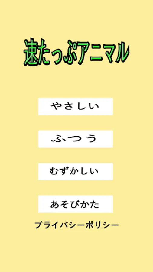 難易度は最初に「やさしい・ふつう・むずかしい」の3つから選べるよ!