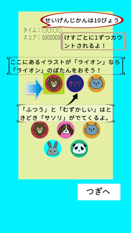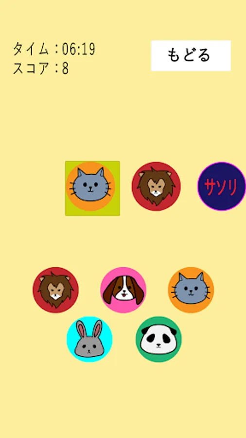 画面上に並んでいる動物のアイコンと同じアイコンを押して消していく簡単ゲーム!