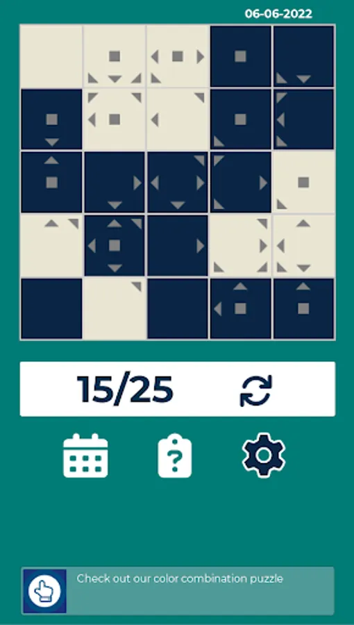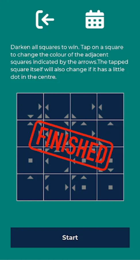In this fun game you must darken all the squares of the board. Tap on a square to change the colour of the adjacent ones indicated by the arrows.The tapped square itself will also change if it has a little dot in the centre.