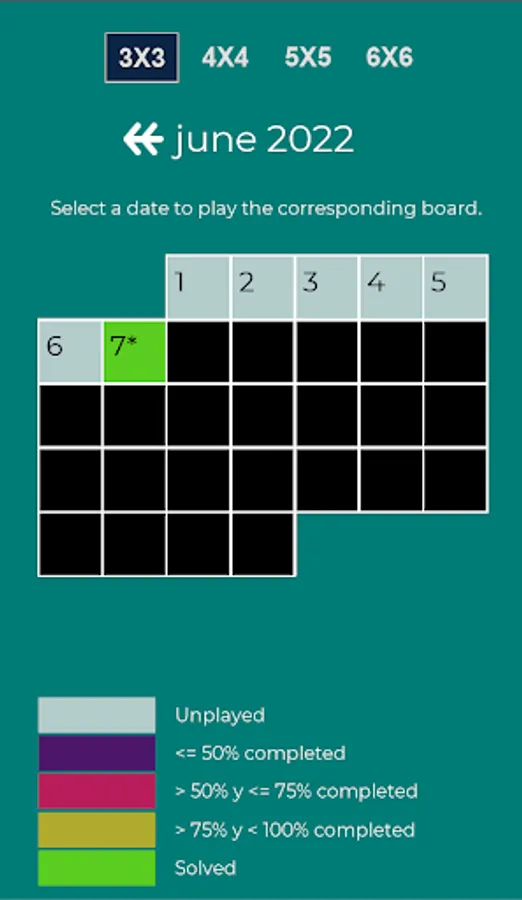 This game is free for 4X4 square boards and you will have access only to the challenges of the current month.