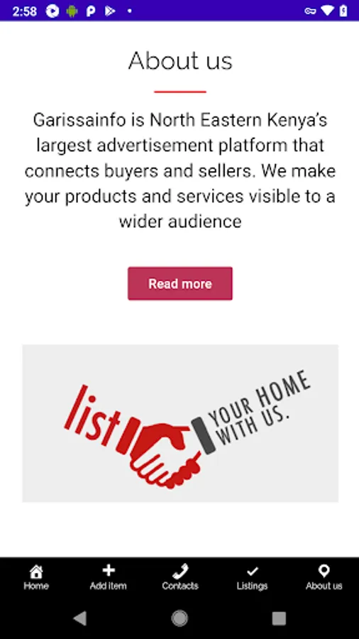 The Garissainfo app enables businesses, companies, N.G.O.s and individuals in the region and all over Kenya to list their products/services, contacts, location for easy connection with their customers.