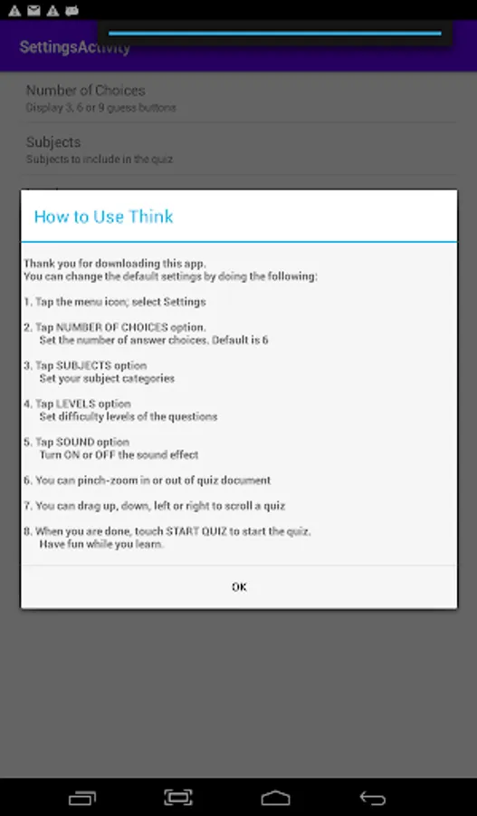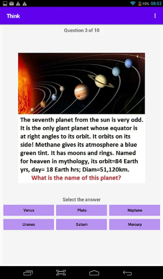 This is a great educational quiz app. It features a broad spectrum of quizzes that are very challenging yet interesting enough to keep you wondering what the answer might be and what is coming up next. It is as if you are on the TV program, Jeopardy. I highly recommend this app if you want to broaden your horizon in terms of your knowledge depth on a wide array of topics.