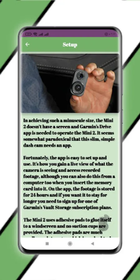 Welcome to the application of the wireless security system setup and operation guide from Garmin Dash Cam Mini 2, where you can easily see all the specifications and advantages of Garmin Dash Cam Mini 2 through the application