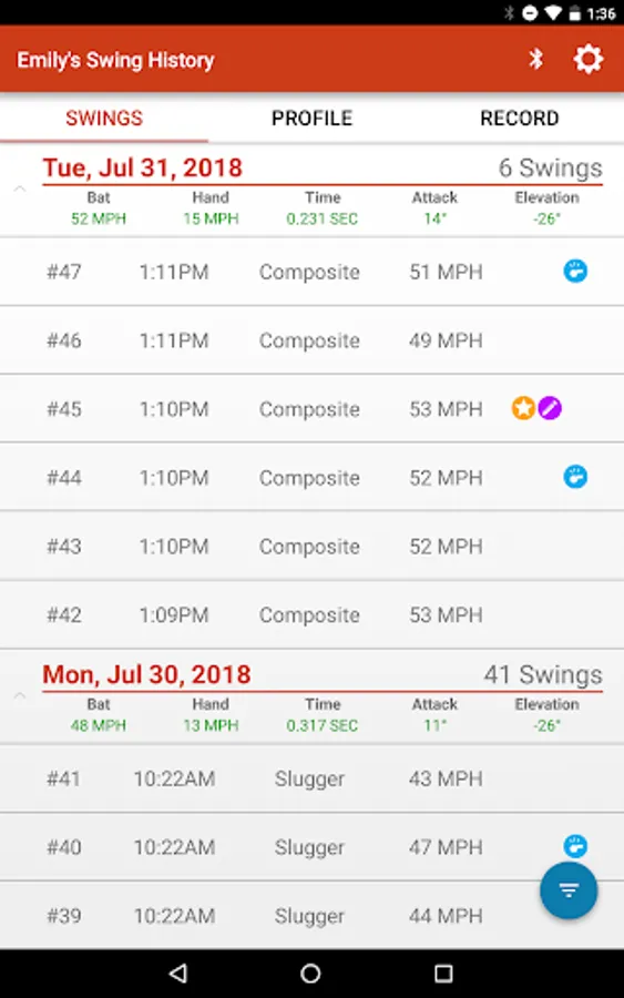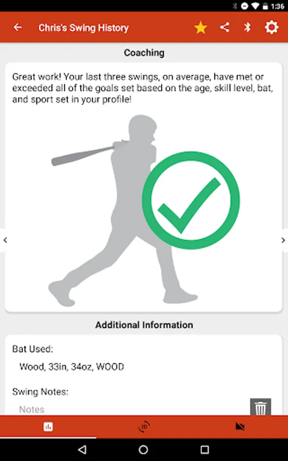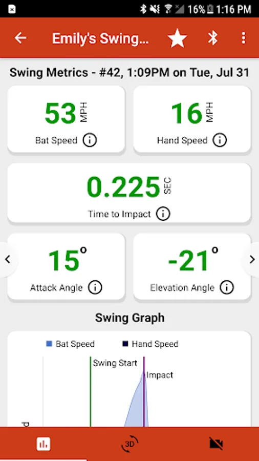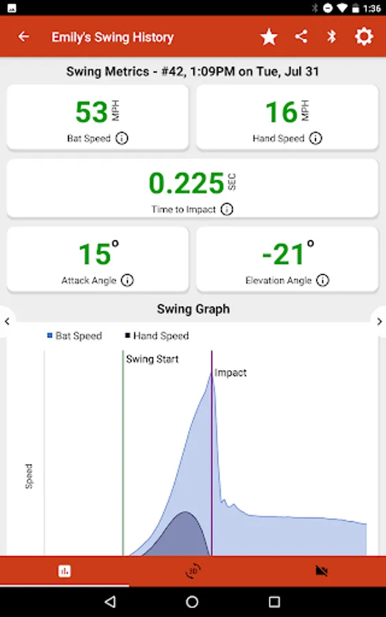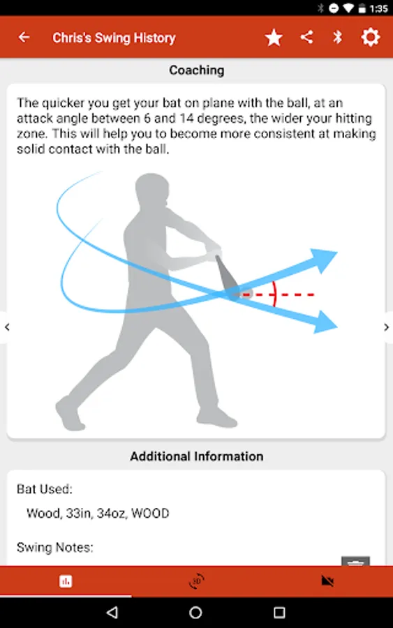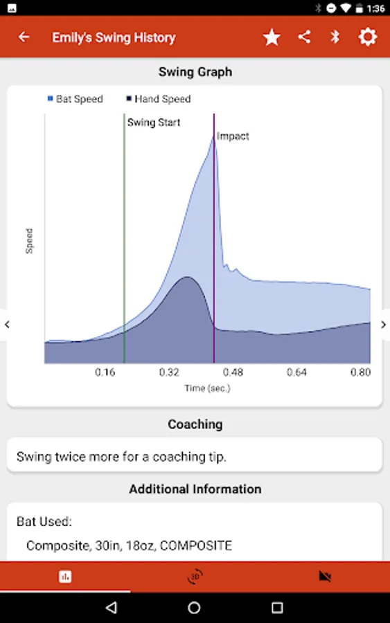 - Compare your performance to previous swings and to ideal numbers based on age, sport (baseball or softball), and skill level