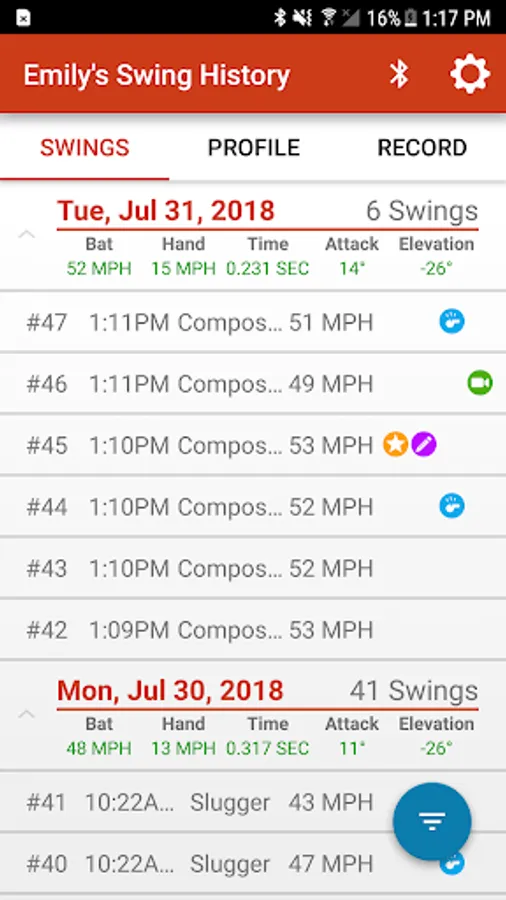 Coaches can organize swing data with the Impact app for multiple players by creating profiles for each player that include age, baseball or softball and skill level, and then the app will determine swing metrics for comparison. The coach can create an avatar for each player with uniform name, number, color, even bat type and length.