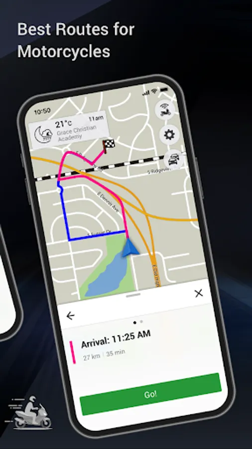 Get spoken turn-by-turn directions through your connected helmet or headset.