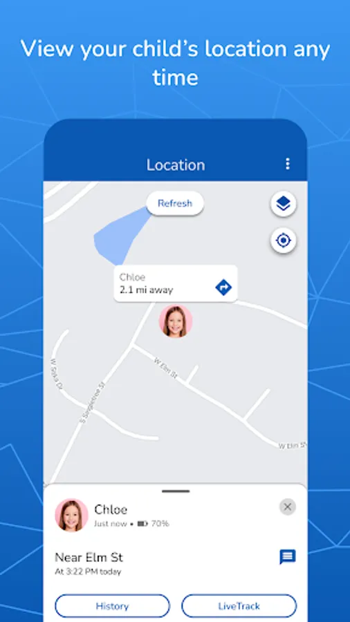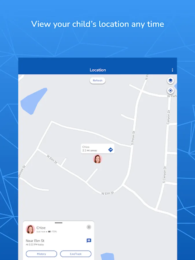 • Track your child’s location on the map.*