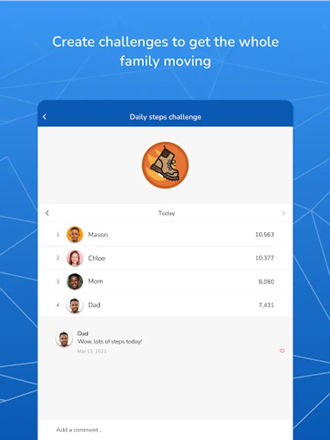 • Connect with other families and compete in multi-family challenges.