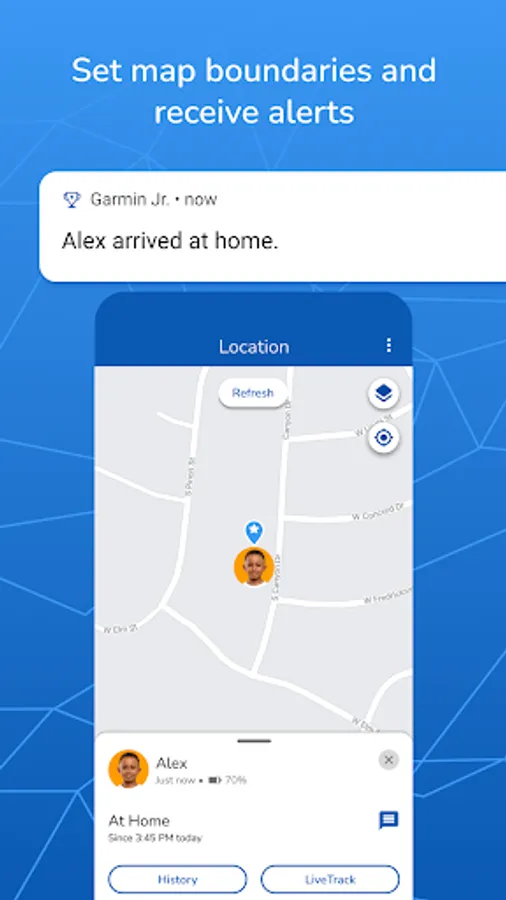 • Send text and voice messages to your child’s compatible Garmin device.*