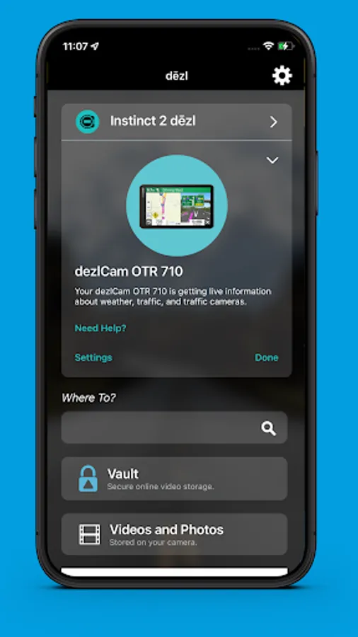 The dēzl app on your smartphone pairs with a compatible Garmin truck navigator or dēzl™ Edition smartwatch to access features designed to enhance your over-the-road lifestyle.