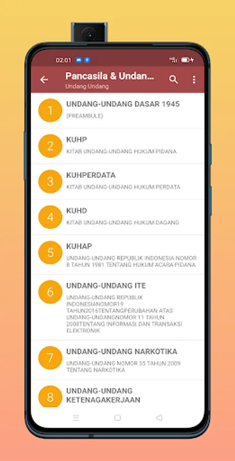 This application contains a list of Pancasila, Pancasila items and library collections of Law in Indonesia. No need to install an application that contains 1 book of law, all (will) be in this application.